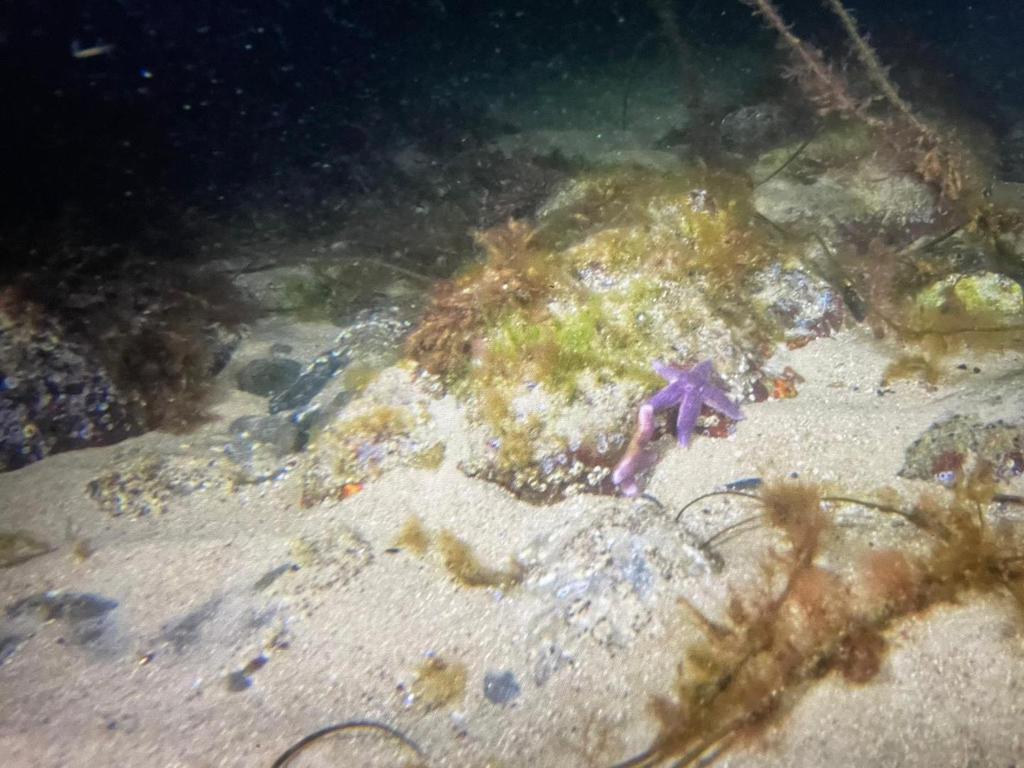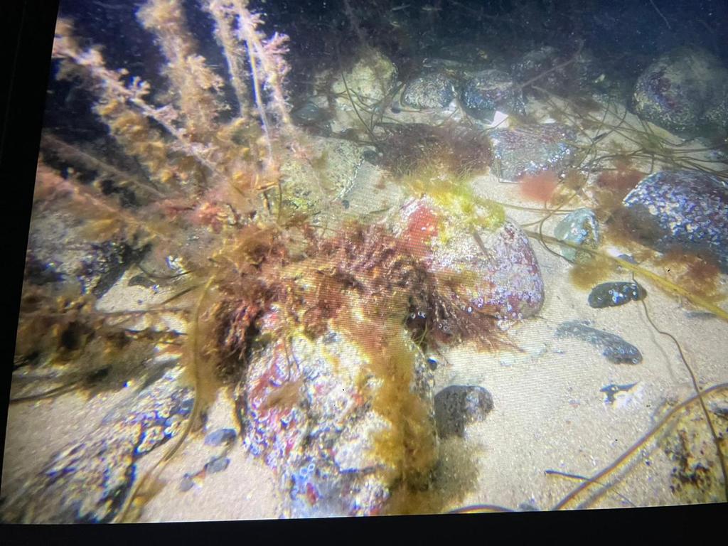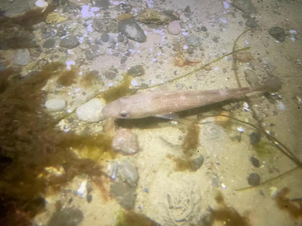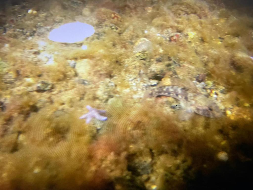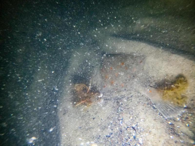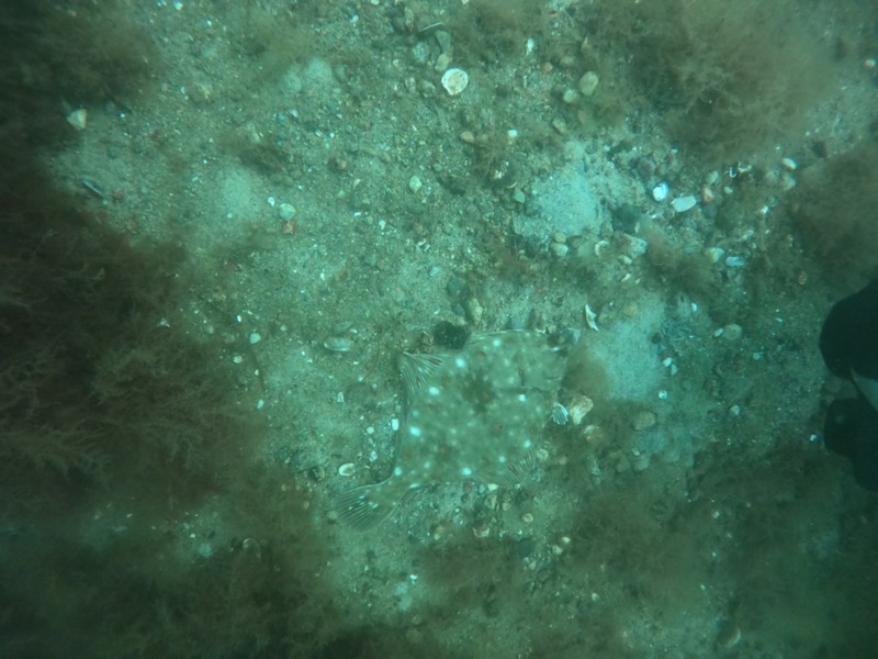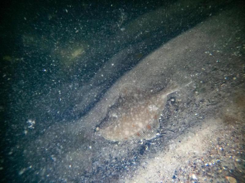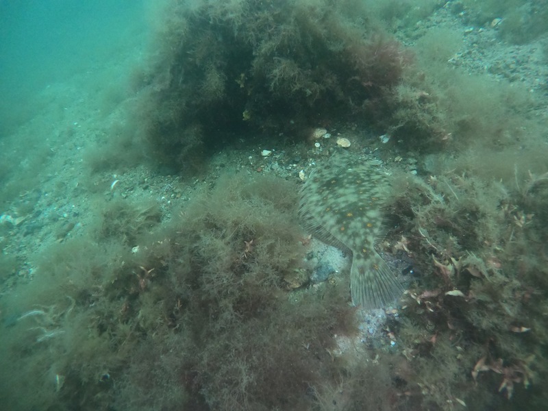 Björn, Detlev, Hinni und Lars freuen sich über die guten Bedingungen. Bei 7°C Wassertemperatur und 5m Sicht können sie reichlich Fische beobachten.