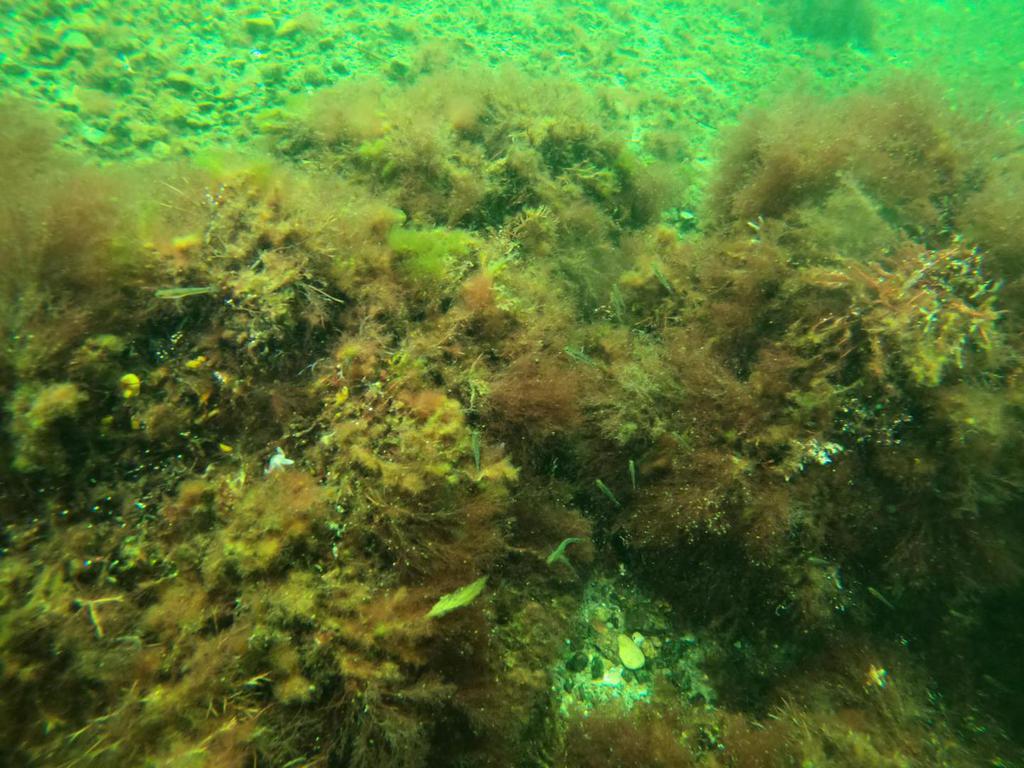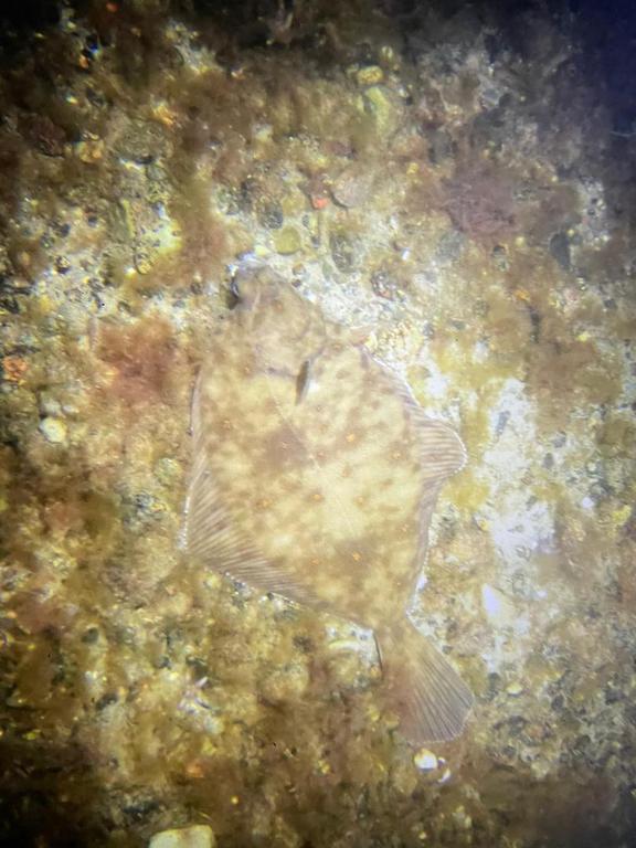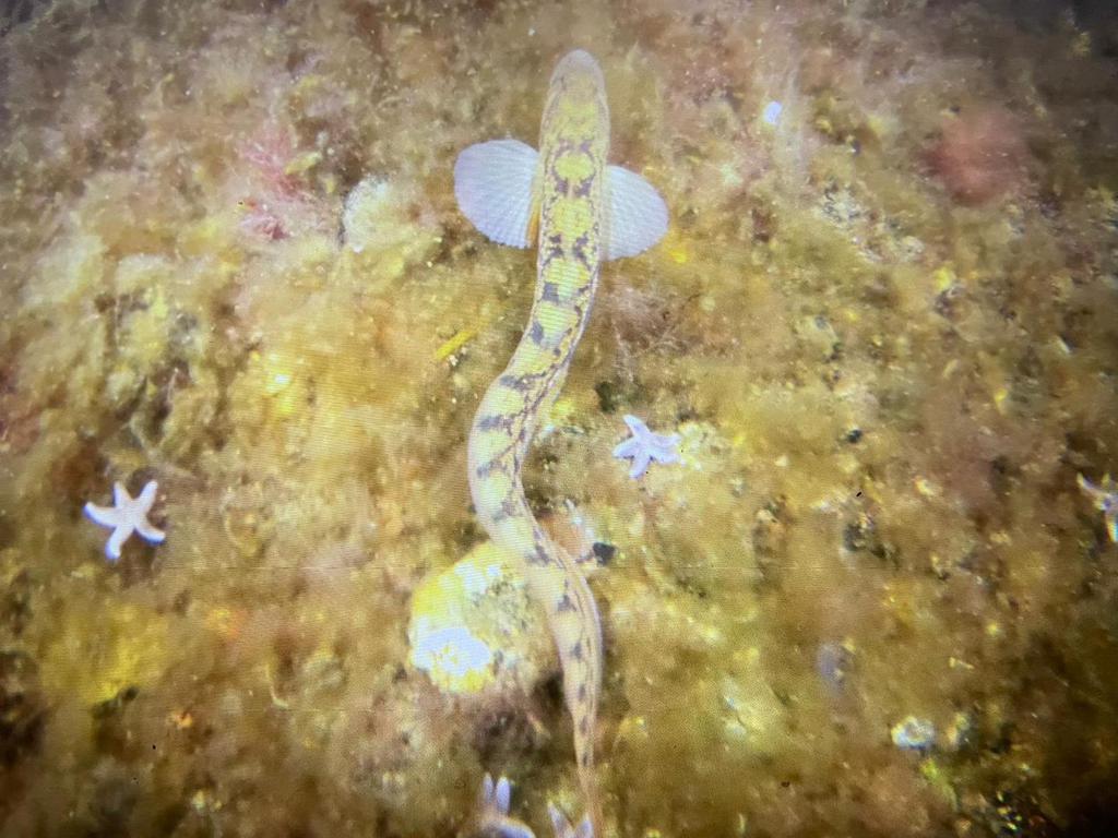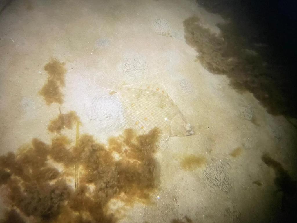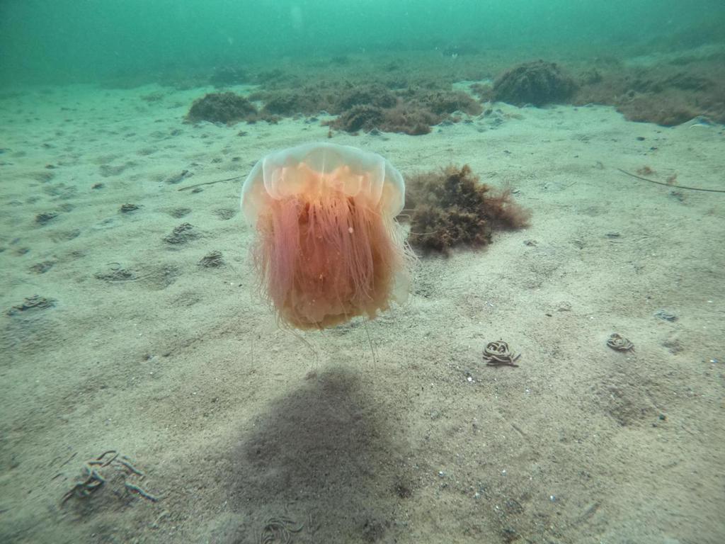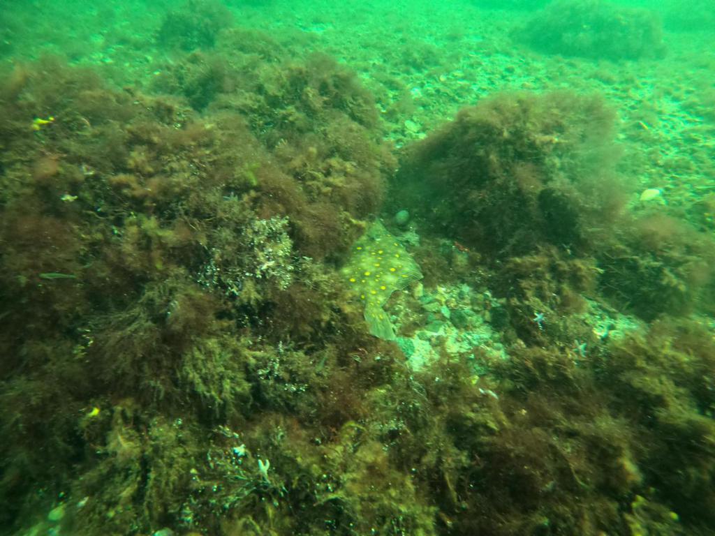 Björn, Detlev, Hinni und Lars freuen sich über die guten Bedingungen. Bei 7°C Wassertemperatur und 5m Sicht können sie reichlich Fische beobachten.