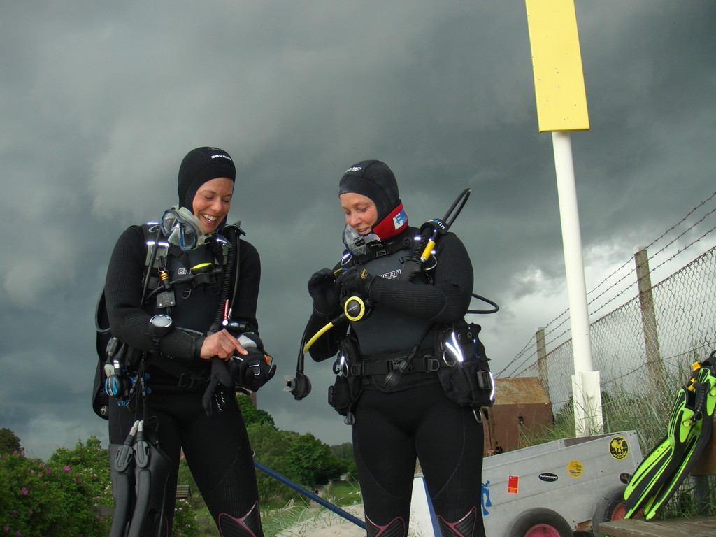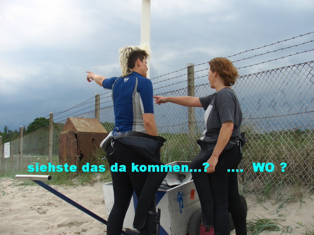 Nun, da das Wetter etwas unbeständig war kam es zu einem Tauchgang mit so ziemlich allen Witterungs- bedingungen........ Wie auf den Bildern unschwer zu erkennen ist, sahen die beiden das kommen.....