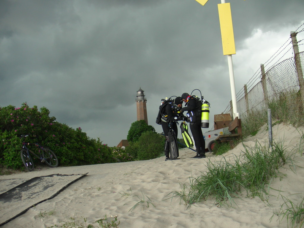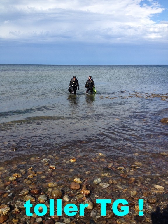 Egal, norddeutsche Taucher schreckt nichts zurück! Die nehmen das Wetter wie es kommt! Und es kam auch so.... noch besser: nach den optischen Unterwassereinrdrücken des Unwetters riss nach der Hälfte des TG der Himmel auf .... total blauer Himmel, Sonne satt!!! Da die Sicht vorher schon gut war, leuchtete jetzt die Osteee so richtig auf und nach über 60Min. endete ein erlebnissreicher TG mit zwei rundum grinsenden Tauchern.