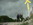 dunkelgrauschwarze Wolkenwand mit aufziehenden Windböhen mit Regen.